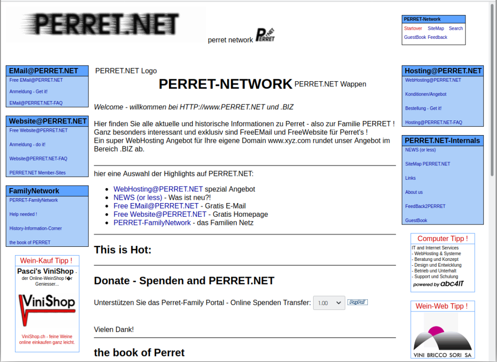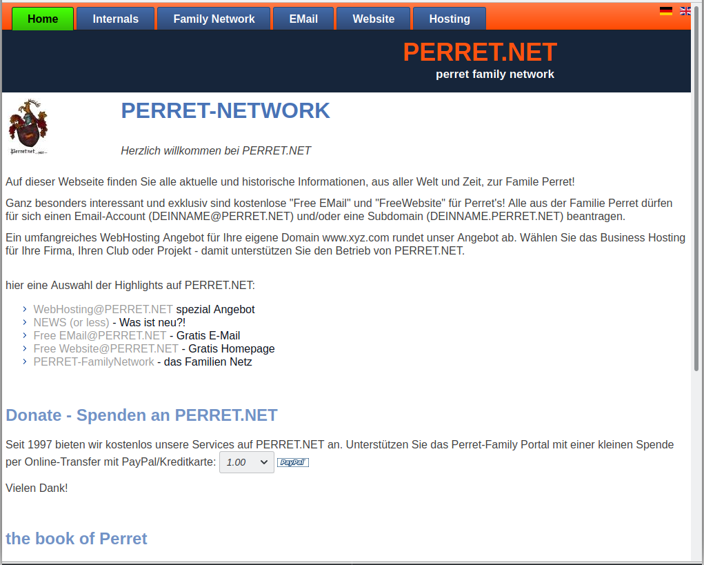 Das Projekt PERRET.NET bietet, hauptsächlich für den PERRET-Clan, Dienste und Infos im Internet an.